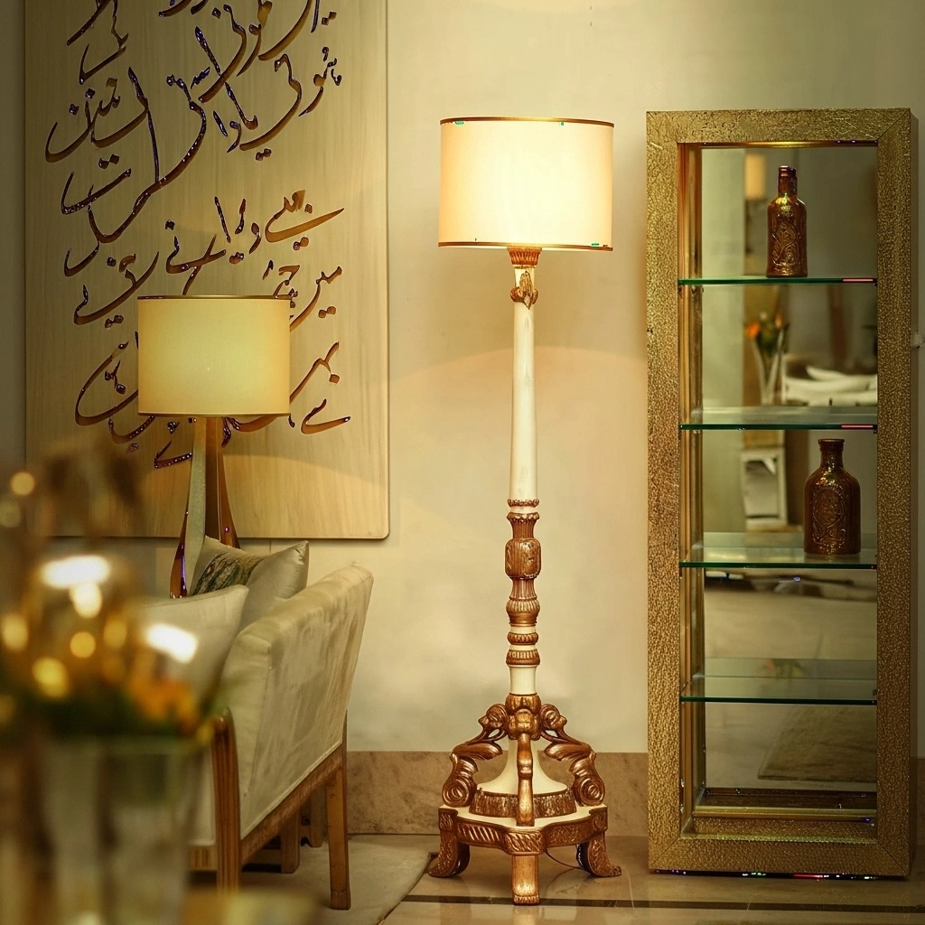 The Classic Uplighter combines timeless elegance with functional design, making it the perfect addition to any sophisticated living space. Featuring an exquisite gold-and-white column base and a soft, fabric lampshade, this floor lamp exudes a sense of classic luxury. Its tall stature creates a striking focal point, while the uplighting effect provides a warm, ambient glow that enhances the atmosphere of any room. Whether placed in a living room, entryway, or bedroom, the Classic Uplighter offers both style and grace, complementing a variety of décor themes.
