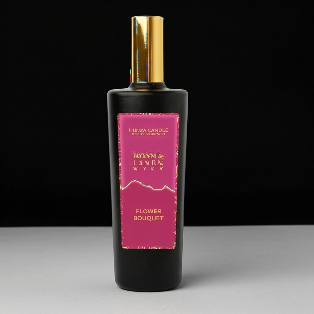Presented in a sophisticated matte black bottle with a striking gold spray cap and a vibrant floral label, Flower Bouquet blends luxury and functionality. Whether lightly misted over curtains, bedding, or into the air, it creates a serene, inviting atmosphere that feels polished and comforting.